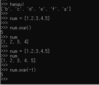 리스트.pop() 결과와 리스트.pop(-1) 결과가 같은 걸 볼 수 있다.