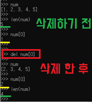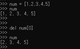 삭제하기전 리스트의 길이 len(num) : 5