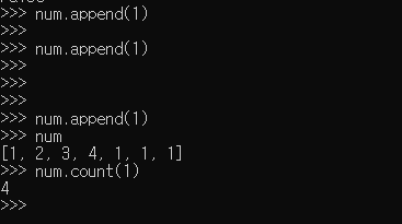 리스트에서 특정값이 얼마나 들어있나 확인 하기위해서는 count() 를 사용한다.