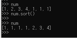 리스트.sort() : 리스트 자체를 내부적으로 정렬