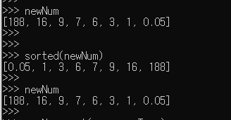 sorted(newNum) 을 하여도 원래 newNum 리스트의 요소들의 배열은 바뀌지 않는다.
