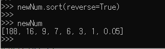 *내림차순으로 정렬하는 방법 : 리스트.sort(reverse = True)