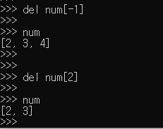 삭제한 후 리스트의 길이 len(num) : 4