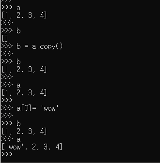 빈 리스트 b에 a.copy() 를 한 후