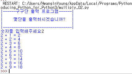 맞습니다 하지만 질문을 하고 사용자가 원하는 구구단을 입력할 겁니다.