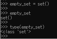 set() 함수를 써서 set 셋 를 생성하였습니다