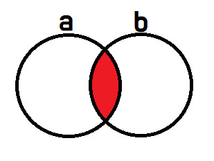 교집합은 a 집합과 b 집합이 공통으로 들어있는 부분을 가리킨다
