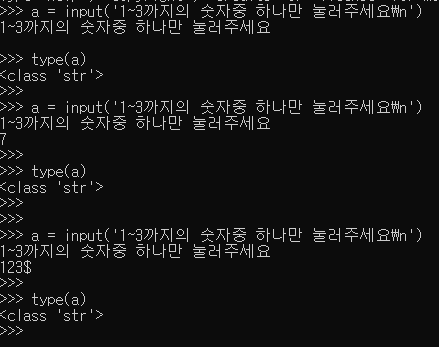 a = input('1~3까지의 숫자중 하나만 눌러주세요\n')