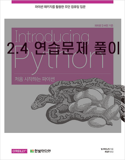 처음 시작하는 파이썬 70p에 나오는 2.4 연습문제를 풀이해보았습니다.