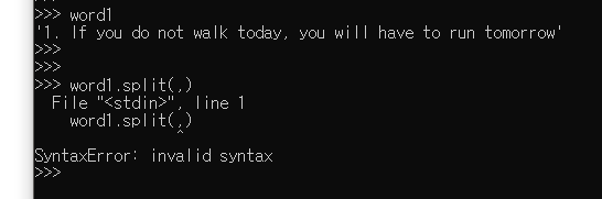 word1.split(',') 이렇게 해주어야 합니다. 혹은 "" 큰따옴표로 둘러쌓도 됩니다.