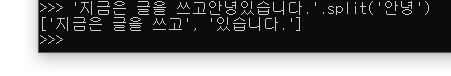 '지금은 글을 쓰고안녕있습니다.'.split('안녕')