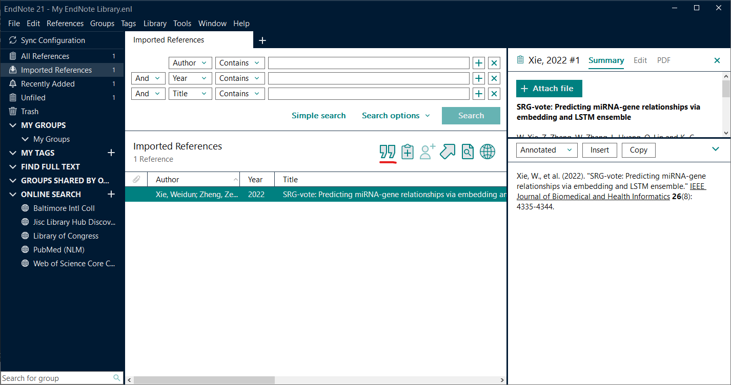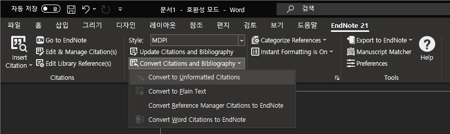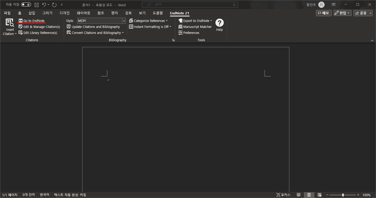 우측 상단에 EndNote21이 보이시나요!