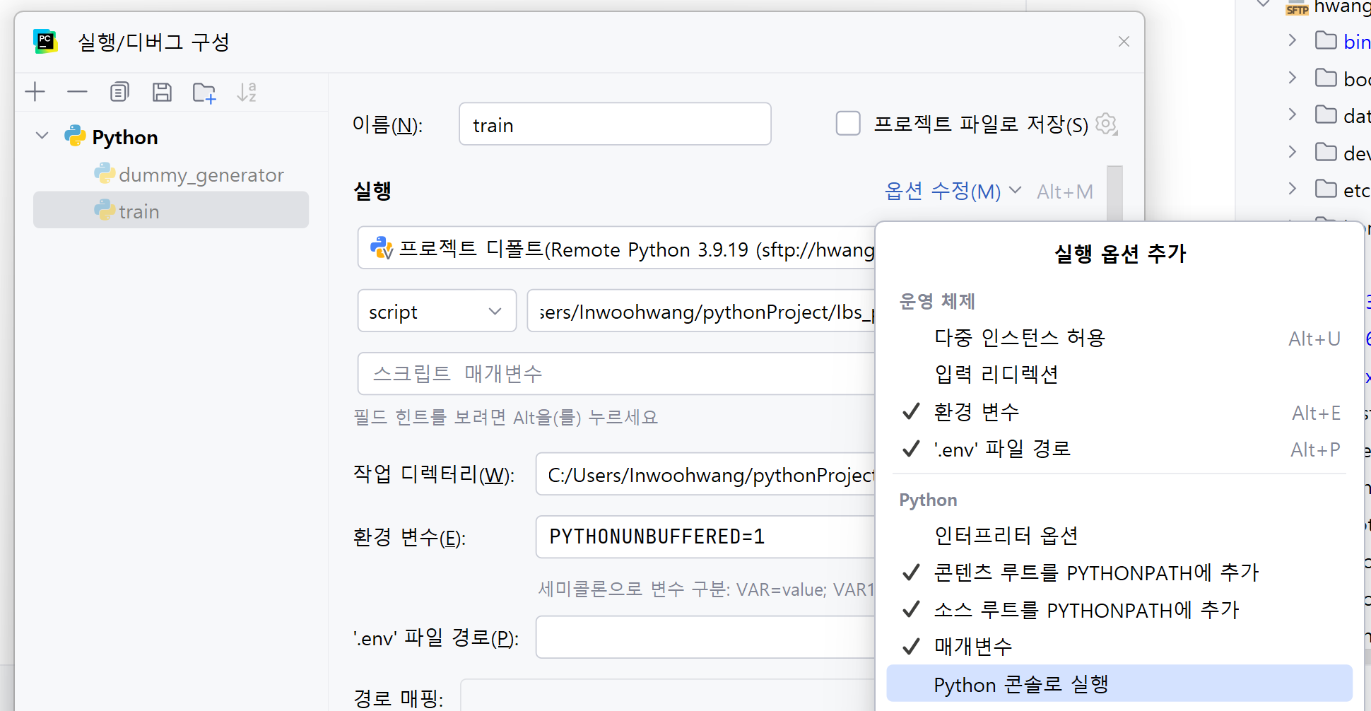 원하시는 파일에 가서 "Python 콘솔로 실행"을 클릭하시면 됩니다